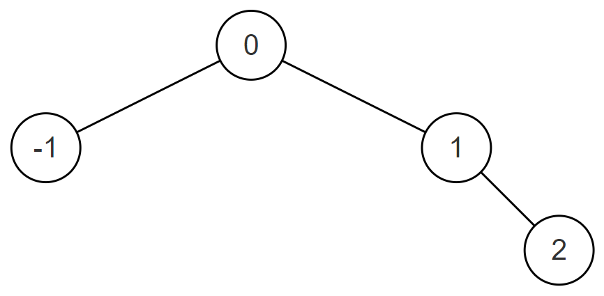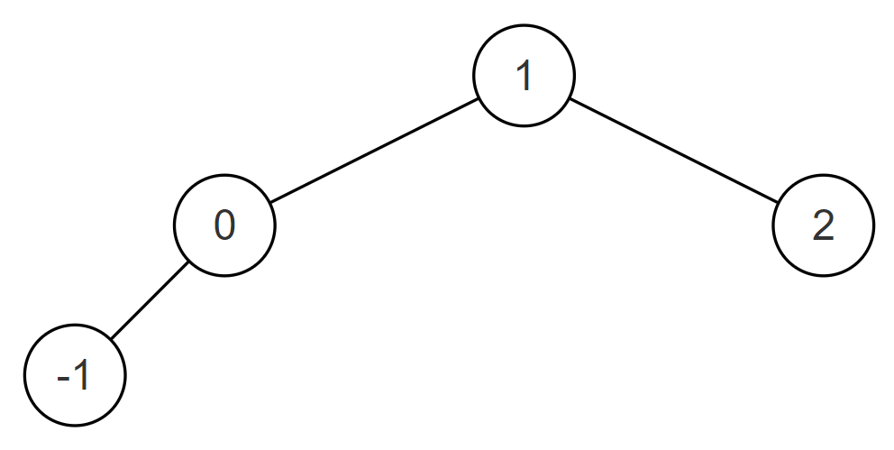 例如当输入的升序数组为[-1,0,1,2]时,转化后的平衡二叉搜索树(BST)可以为{1,0,2,-1},如下图所示: