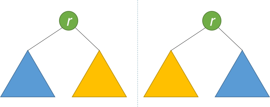 因此,该问题可以转化为:两个树在什么情况下互为镜像?
