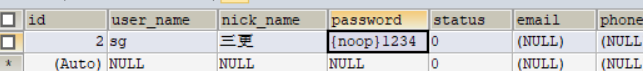 注意:如果要测试,需要往用户表中写入用户数据,并且如果你想让用户的密码是明文存储,需要在密码前加{noop}。例如