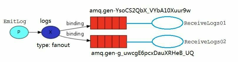 这种类型非常简单。正如从名称中猜到的那样,它是将接收到的所有消息广播到它知道的 所有队列中。系统中默认有些 exchange 类型