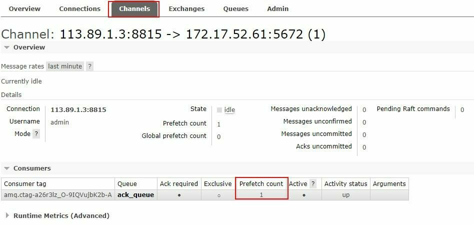 预取值为 1 是最保守的。当然这将使吞吐量变得很低,特别是消费者连接延迟很严重的情况下,特别是在消费者连接等待时间较长的环境 中。对于大多数应用来说,稍微高一点的值将是最佳的。