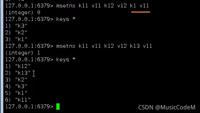 setnx <key><value>只有在 key 不存在时 设置 key 的值