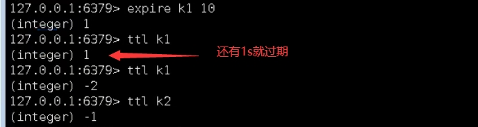 ttl key 查看还有多少秒过期,-1表示永不过期,-2表示已过期