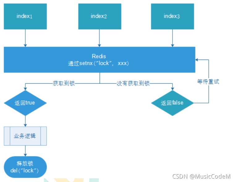 场景:如果业务逻辑的执行时间是7s。执行流程如下 1.index1业务逻辑没执行完,3秒后锁被自动释放。 2.index2获取到锁,执行业务逻辑,3秒后锁被自动释放。 3.index3获取到锁,执行业务逻辑 4.index1业务逻辑执行完成,开始调用del释放锁,这时释放的是index3的锁,导致index3的业务只执行1s就被别人释放。 最终等于没锁的情况。